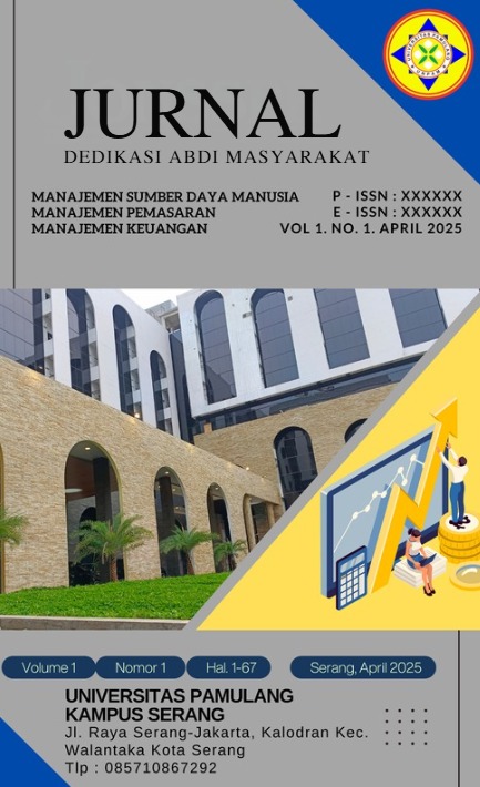 Vol. 1 No. 3 (2025)Jurnal Dedikasi Abdi Masyarakat Volume 1 Nomor 3 ini memuat tema yang sebagian besar merupakan kegiatan edukasi kepada masyarakat, diantarannya tentang Sosialisasi Strategi Pemasaran Untuk Mempersiapkan Jiwa Kewirausahaan Bagi Siswa-siswi, Integrasi Literasi Digital dan Strategi Green Marketing Untuk Menumbuhkan Jiwa Kewirausahaan Berwawasan Lingkungan Pada Pelajar , Strategi Pemasaran Kreatif untuk Meningkatkan Nilai Jual Produk Lokal Studi Kasus Usaha Aneka Kerupuk “Fajar Putra”, Penguatan Motivasi dan Komitmen Kerja Untuk Meningkatkan Produktivitas , Peningkatan Disiplin Siswa Melalui Pendekatan Manajemen Sumber Daya Manusia Berbasis Soft Skill Di , Pelatihan Penyusunan Rencana Bisnis dan Analisis Keuangan Bagi Siswa-Siswi Sekolah Menengah Kejuruan , Strategi Peningkatan Kualitas Sumber Daya Manusia Melalui Pelatihan Komunikasi Bisnis Berbasis Teknologi Pada Siswa, Optimalisasi Pelatihan dan Pengembangan Dalam Meningkatkan Kualitas SDM Tenaga Kependidikan, Membangun Kreatifitas Untuk Meningkatkan Minat Wiraswasta Siswa , Edukasi Literasi Keuangan Untuk Meningkatkan Kemampuan Siswa Dalam Mengelola Keuangan Pribadi.